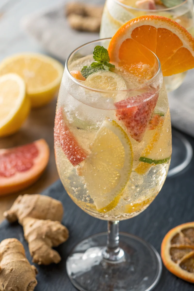 - Optional garnish: citrus slices, mint, rosemary sprig, candied ginger