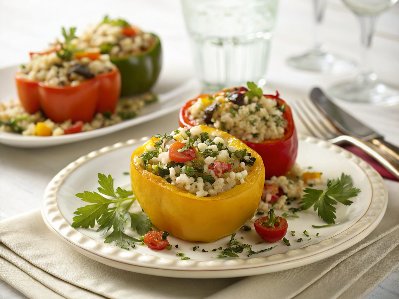 Quinoa makes an excellent rice substitute, adding complete protein and a slightly nutty flavor that pairs wonderfully with Mediterranean seasonings. Since quinoa is lighter than rice, you may need slightly more to fill the peppers adequately. Pearl couscous (Israeli couscous) provides an interesting texture and cooks quickly, making it perfect for last-minute meal preparation.