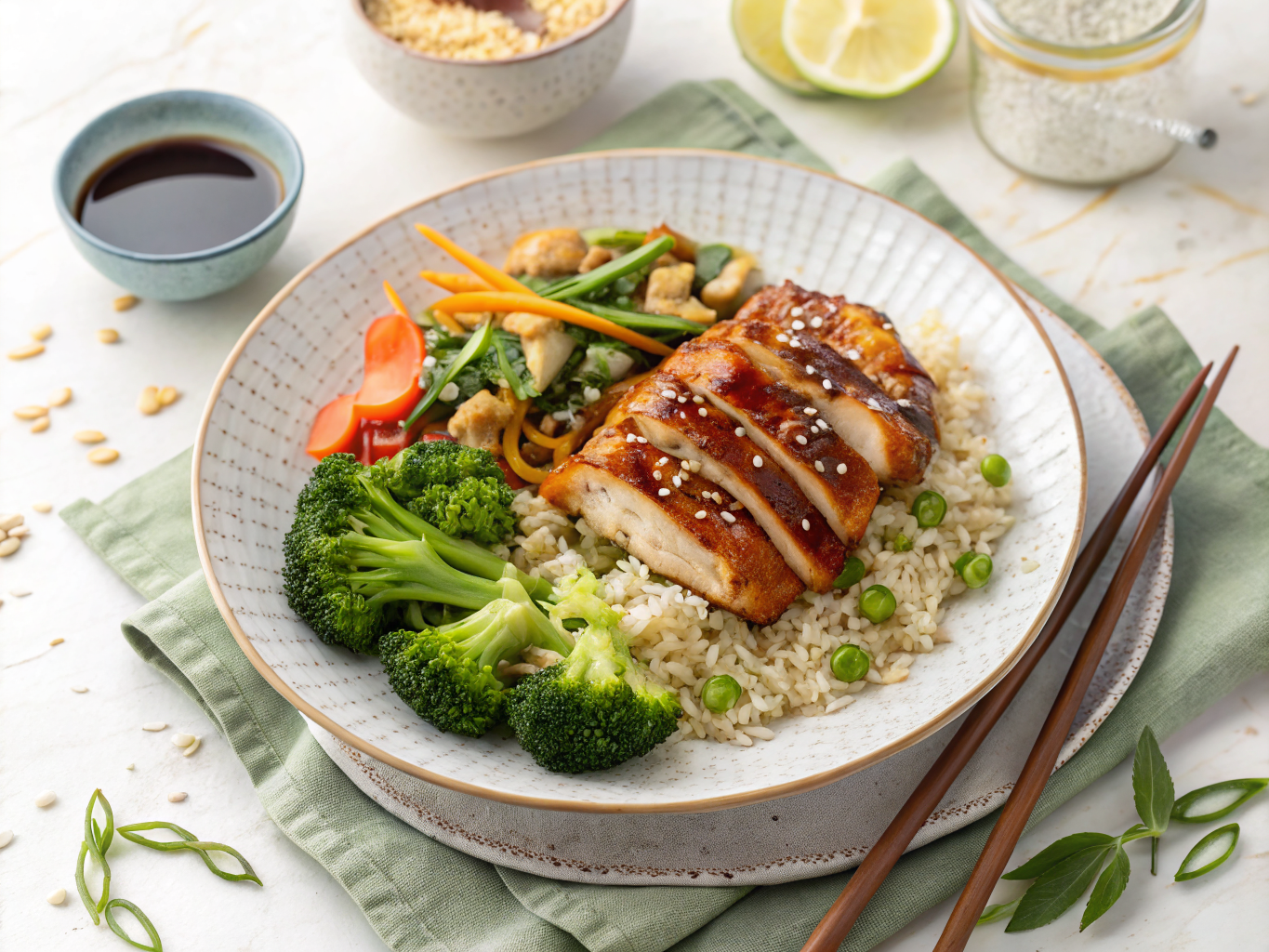 Each serving of this Teriyaki Chicken Meal Prep delivers approximately 450-500 calories, with a macronutrient breakdown of 35-40g protein, 55-60g carbohydrates, and 8-12g fat. This balanced ratio supports muscle maintenance, provides sustained energy, and keeps you satisfied for hours after eating. The moderate calorie count makes it suitable for various dietary goals, from weight loss to maintenance to muscle building.