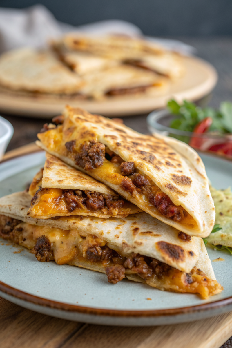 Cheesy, Ground, Beef, Quesadillas — A Culinary Guide to Perfect, Mouth-Watering Cheesy Ground Beef Quesadillas: ground beef beautifully presented. Restaurant-quality food photography, elegant plating, soft natural light. High quality, detailed, mouth-watering composition.