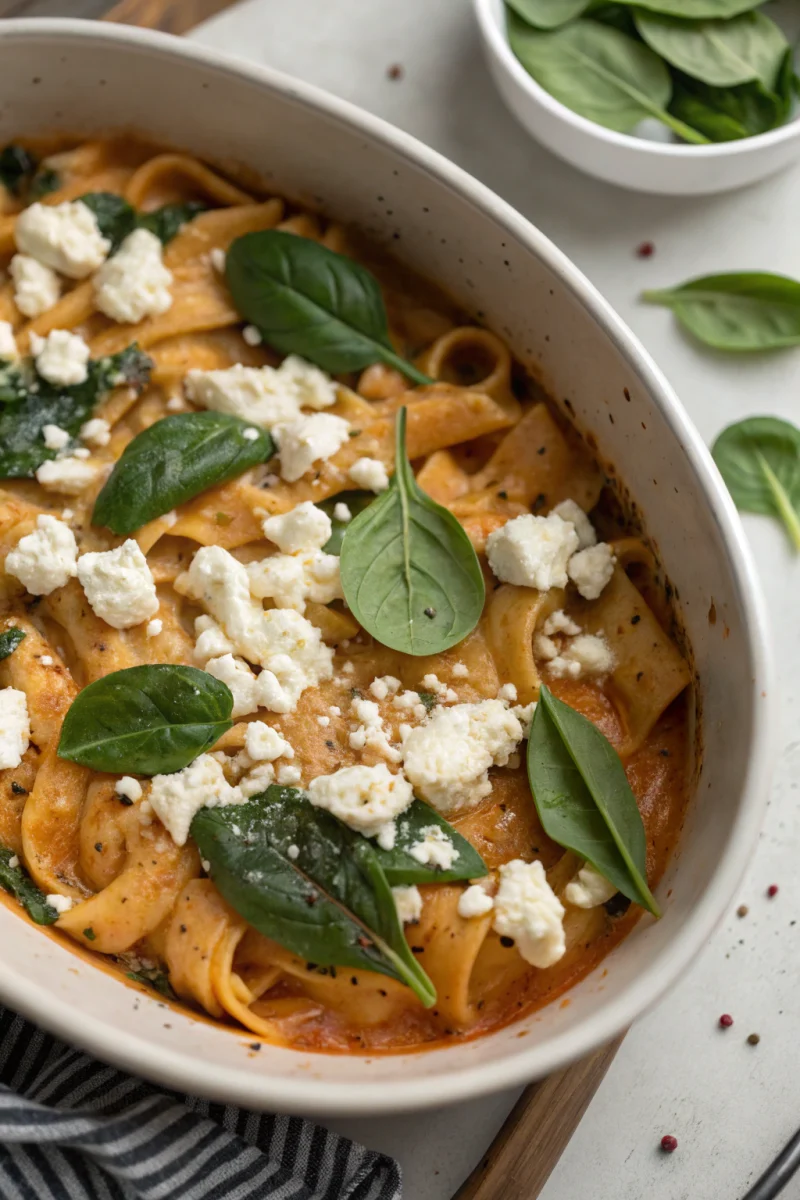 But we’re not stopping there. To elevate this beloved dish and infuse it with nourishing goodness, we’re folding in fresh, vibrant spinach, adding a layer of flavor and a beautiful emerald hue. This baked feta pasta is so much more than just a quick weeknight meal; it’s an experience, a moment of culinary bliss that requires minimal effort for maximum reward. Whether you’re a seasoned home cook or just starting your culinary journey, this recipe promises a delightful and satisfying meal that will quickly become a fall favorite.