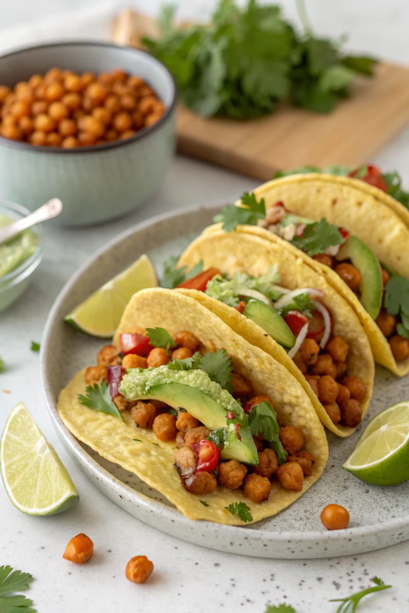 Crispy chickpea tacos with lime avocado cream are a fast, vibrant vegetarian dinner: spiced, crunchy chickpeas tucked into warm tortillas and finished with a cool, zesty sauce. Searches for plant-based tacos have surged, and for good reason—this recipe delivers big texture and flavor in little time.