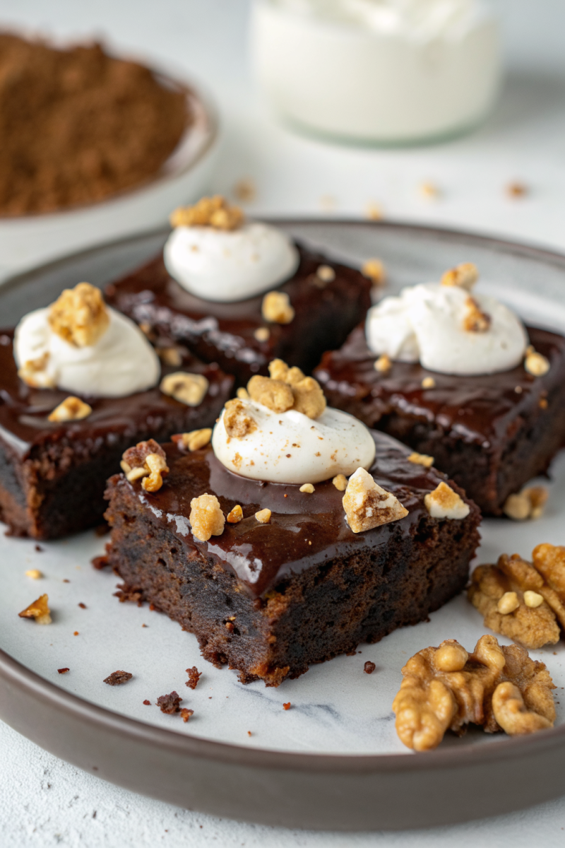 - Nutty Garnish: A sprinkle of toasted chopped nuts (pecans, walnuts, or almonds) adds a delightful crunch and extra visual appeal to your Greek yogurt brownies.