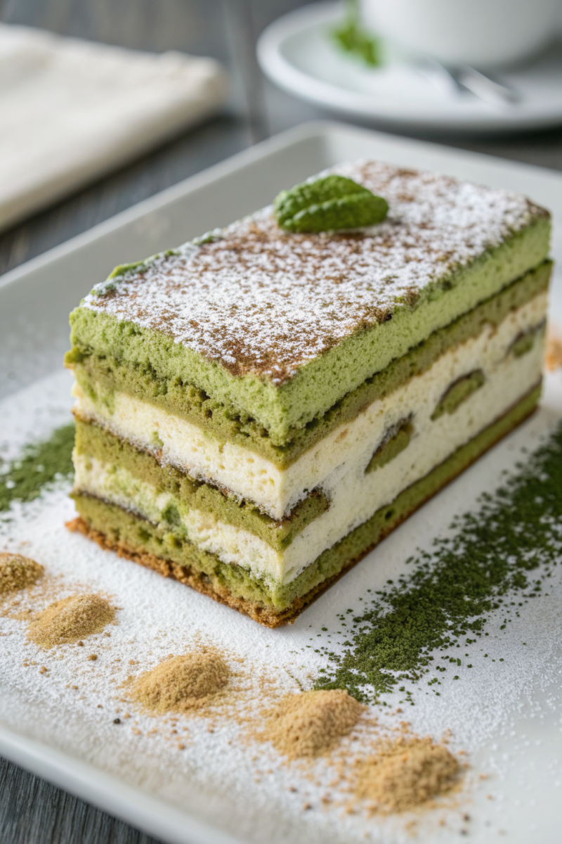 A beautifully made Matcha Tiramisu deserves an equally thoughtful presentation. Dusting with extra matcha powder is a classic finish. Consider:
