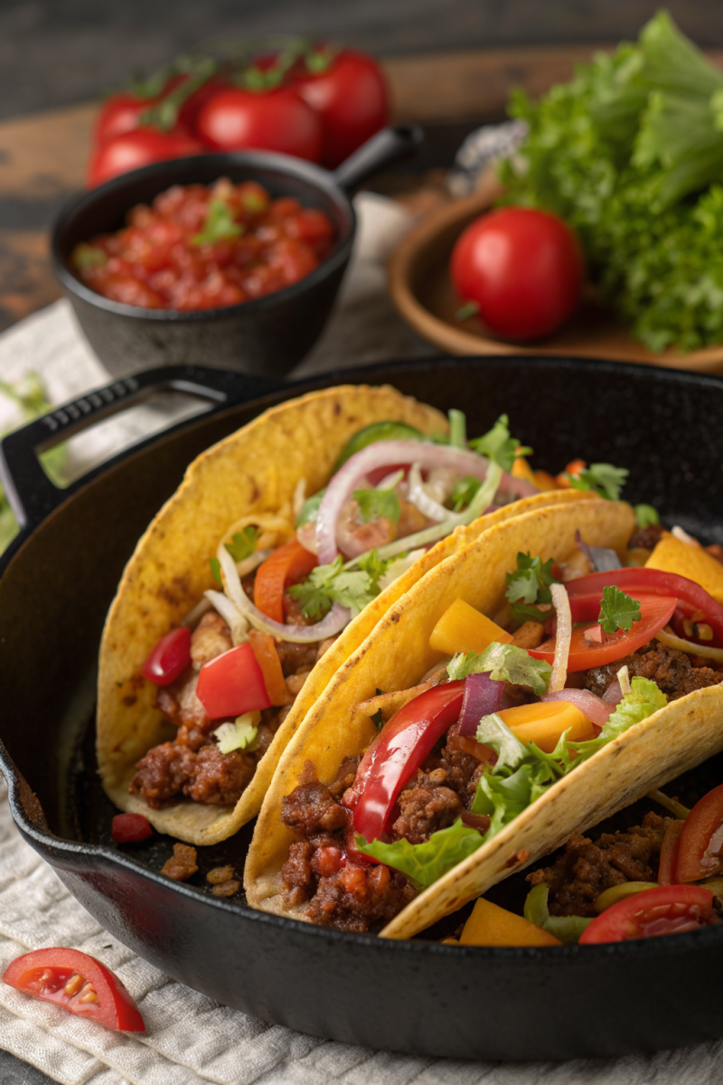 - Warm Tortillas or Taco Shells: Serve with warm corn or flour tortillas (soft tacos), crispy taco shells, or even lettuce cups for a low-carb option. Guests can spoon the skillet mixture into their preferred wrap.