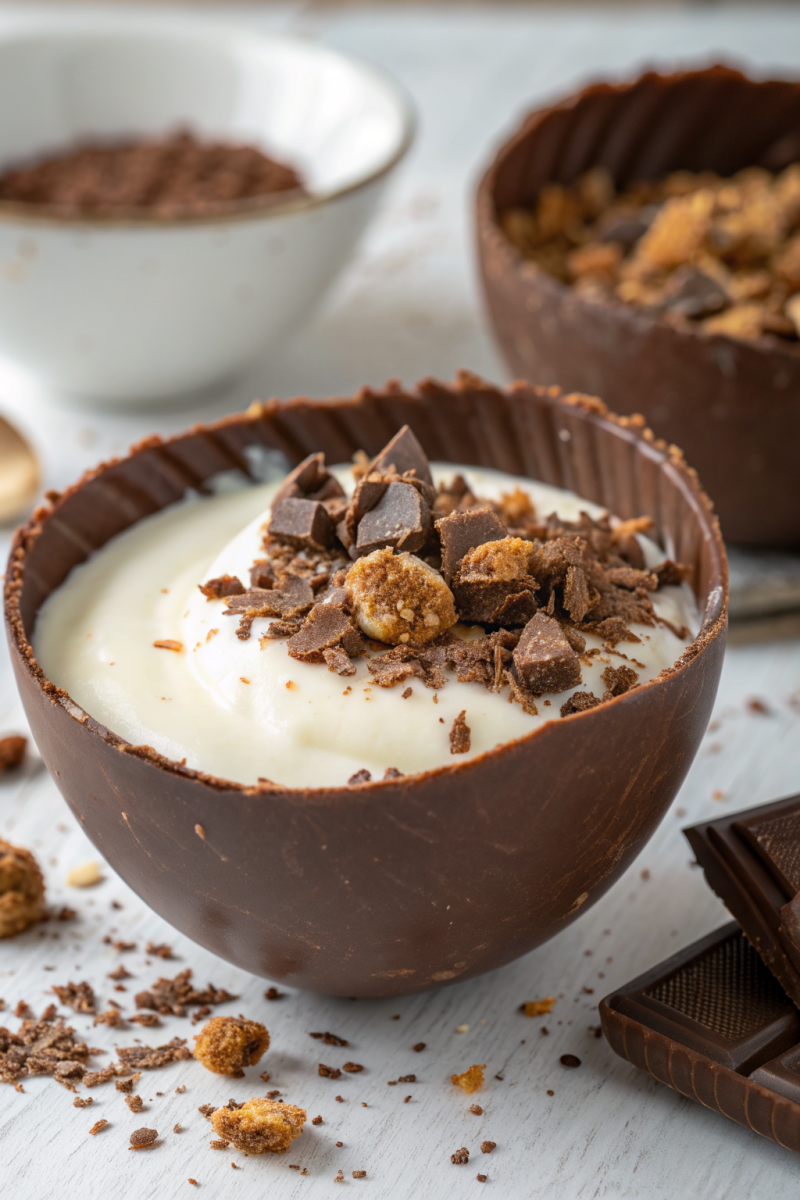 • Garnishes: A few fresh mint leaves, edible flowers, a dusting of matcha powder, or a very fine grating of orange zest can add a sophisticated touch to your **Yogurt, Bowl, Chocolate, Shell**.